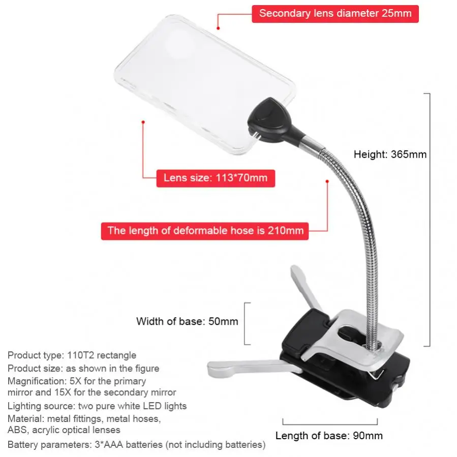 GIWcaNdzHere you can buy 5X and 15X Magnifiers LED Lamp Table Clip Flexible Metal Hose Multi-purpose Magnifying Glass Reading not Including Battery with free delivery to your post office.