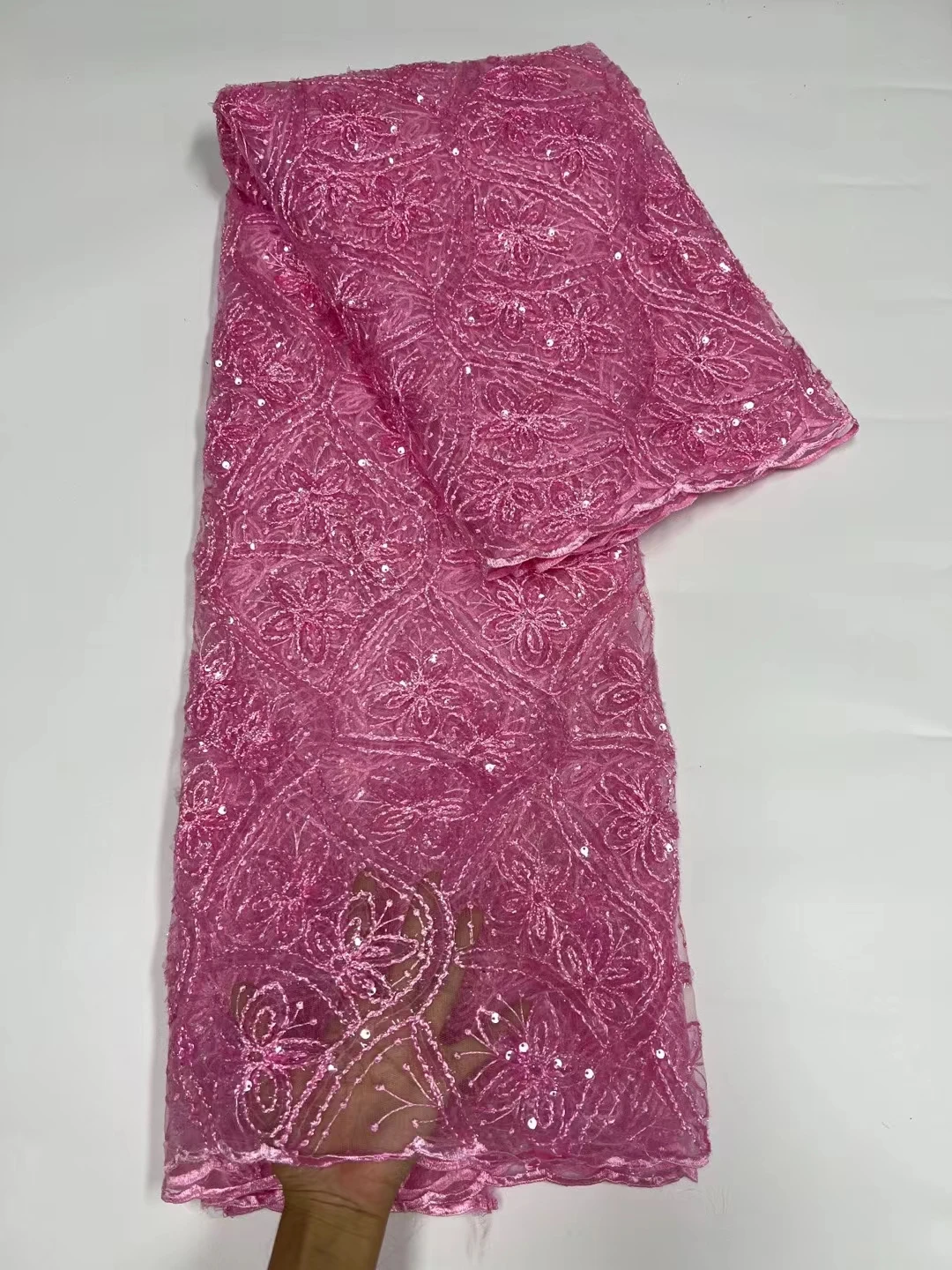 "5Yards Pure Color Sequins Mesh Fabric Advanced Process Embroidered Lace Tulle Superior Pattern For Party Dress Sewing 06M3" * Buy Now With Free Shipping Just For $77