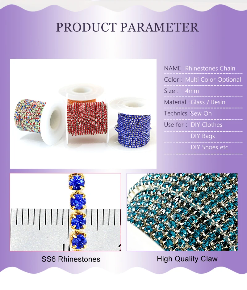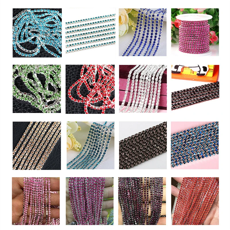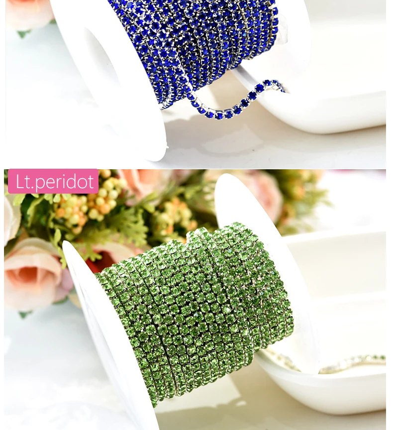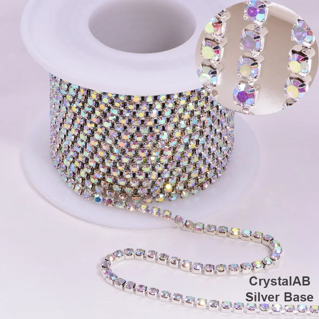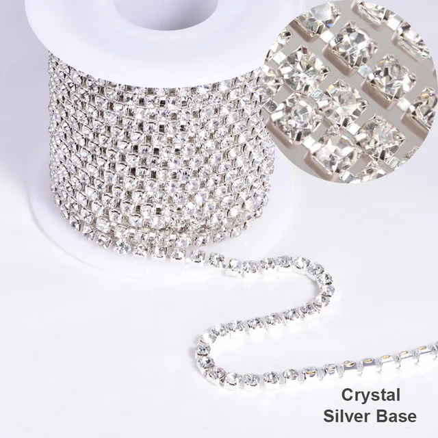 Silver base claw 5yards/R High density ss6 2mm ss8 2 .5mm ss10 2 .8mm ss12 3mm SS16 4mm rhinestone cup chain Sew On glue on trim US $2 .65 - 7 .21 / lot 5 Yards / lot
