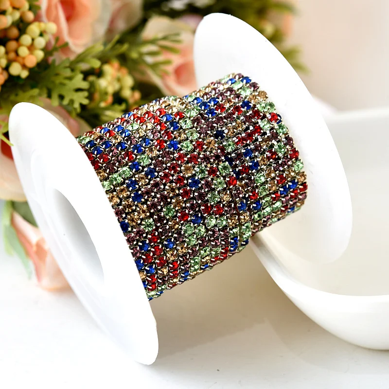 5Yards/Roll SS6 Silver Base Dense Claw Colorful Sew On Rhinestones Cup Chain Claw Rhinestones Trimming For Wedding Dress B0978