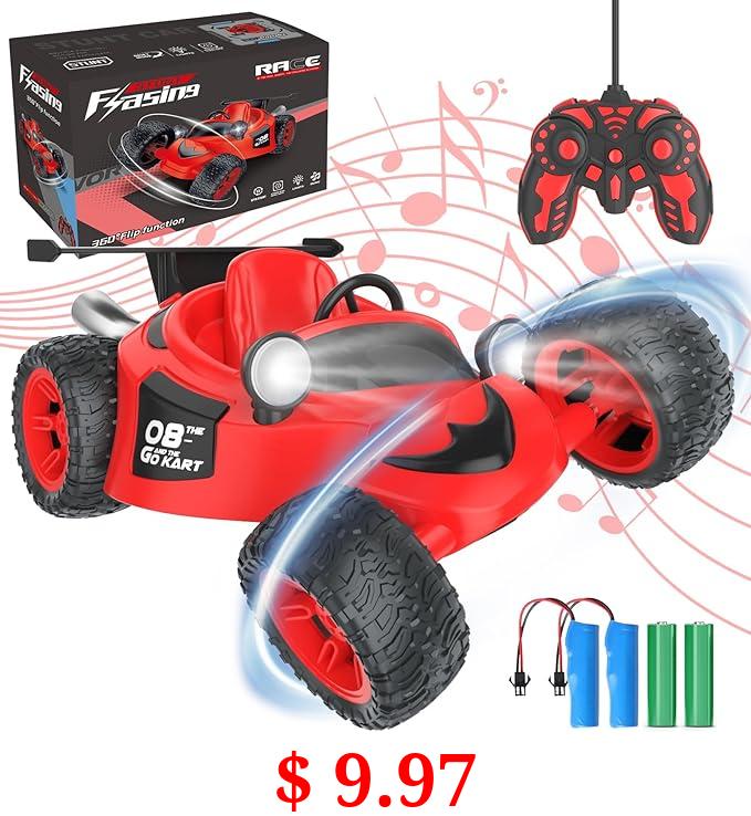 $ 9.97 [Latest Model]Remote Control Car, RC Cars with Electromagnetic Light-up Tires, 360° Rotating and Tumbling RC Stunt Car with Music&Simulated Engine Sound,Toy Car for Boys 4-7,8-12,Xmas Gift (Red-9066)