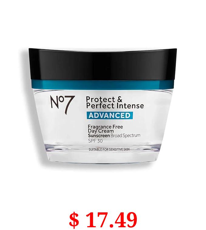 $ 17.49 No7 Protect & Perfect Intense Advanced Fragrance Free Day Cream SPF 30 - Anti Aging Facial Moisturizer with Anti Wrinkle Technology - Hydrating Hyaluronic Acid Cream for Radiant Youthful Skin (50ml)