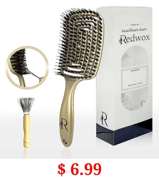 $ 6.99 Redwox - Boar Bristle Hair Brush - Detangling, Styling, Scalp Massage - For All Types (Curly, Thick..) - An Essential Accessories For Hair care - Hairbrushes For Women, Men and Kids