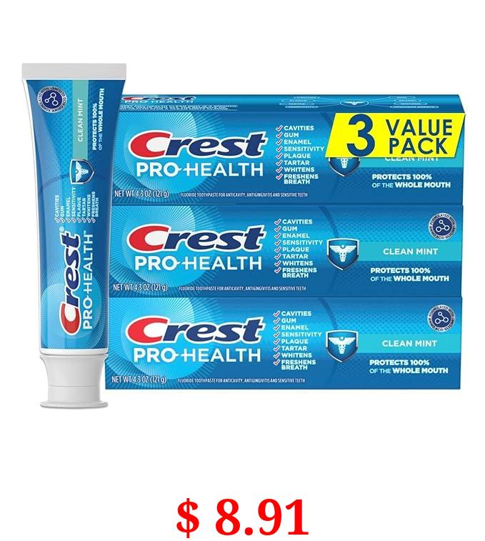 $ 8.91 Crest Pro-Health Clean Mint Toothpaste (4.3oz) Triple Pack