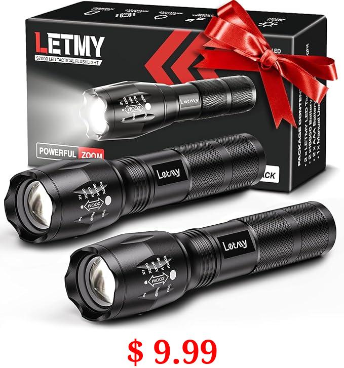 $ 9.99 LETMY LED Tactical Flashlight S1000 PRO - 2 Pack Bright Military Grade Flashlights High Lumens - Portable Handheld Flash Lights with 5 Modes, Zoomable, Waterproof for Camping Outdoor Emergency