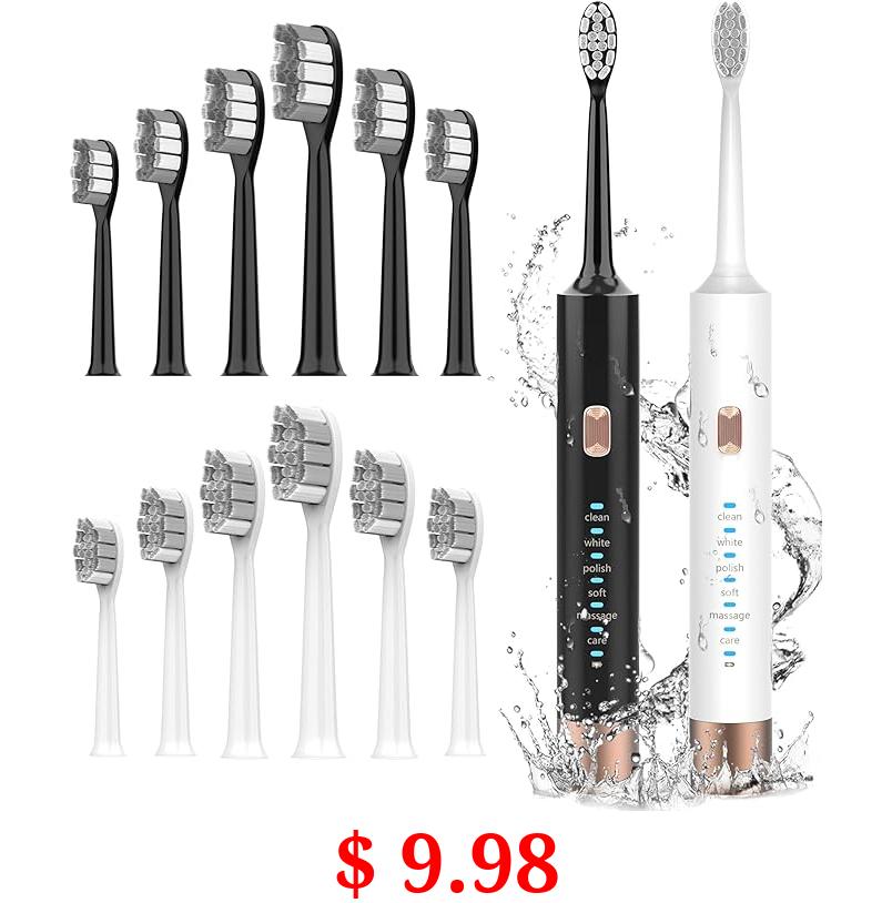 $ 9.98 Aneebart Sonic Electric Toothbrush 2 Pack,Electric Toothbrush for Adults and Kids ,Travel Electric Toothbrush Includes 12 Dupont Brush Heads,IPx7 Waterproof (Black White)