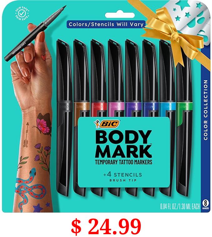 $ 24.99 BIC BodyMark Temporary Tattoo Markers for Skin (MTBP81-AST), Color Collection, Flexible Brush Tip, Assorted Colors, Skin-Safe*, Cosmetic Quality 8-Count Pack