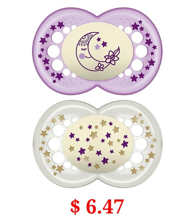 $ 6.47 MAM Night Pacifiers (2 Count), MAM Pacifiers 6+ Months, Best Pacifier for Breastfed Babies, Glow in the Dark Pacifier, Baby Girl Pacifier (Design may vary), 6-16 (Pack of 2)