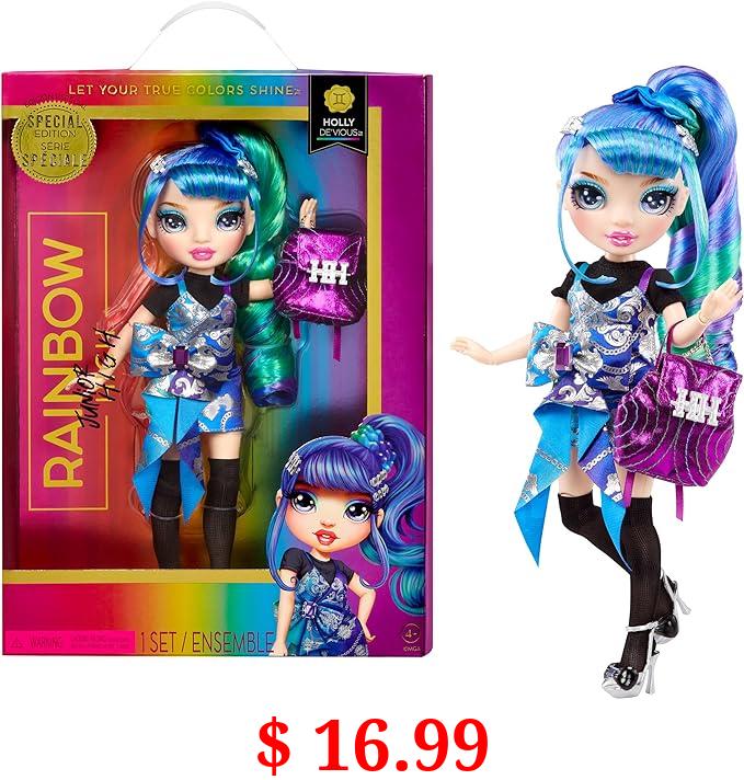 $ 16.99 Rainbow High Junior High Special Edition Holly De’Vious - 9" Blue and Green Posable Fashion Doll with Accessories and Open/Close Soft Backpack. Great Toy Gift for Kids Ages 4-12