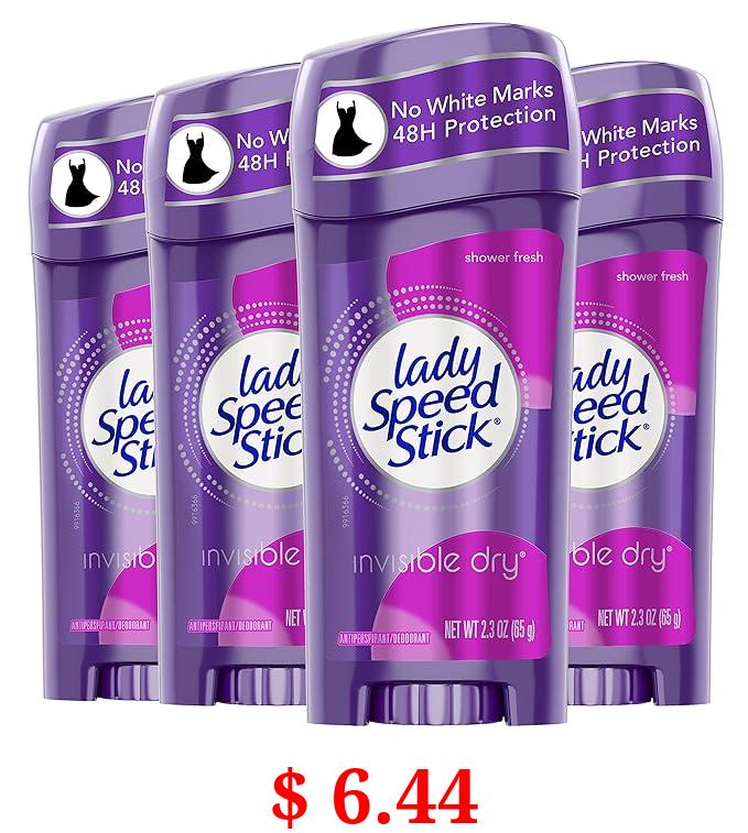 $ 6.44 Lady Speed Stick Invisible Dry Antiperspirant Deodorant, Shower Fresh, 2.3oz, 4 Pack