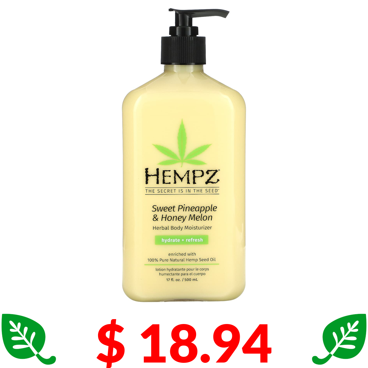 $ 18.94 Hempz, Herbal Body Moisturizer, Sweet Pineapple & Honey Melon, 17 fl oz (500 ml)