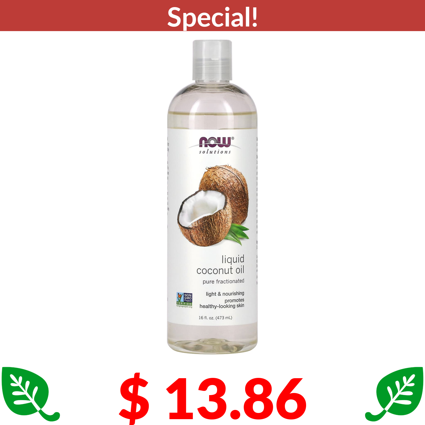$ 13.86 NOW Foods, Solutions, Liquid Coconut Oil, Pure Fractionated, 16 fl oz (473 ml)