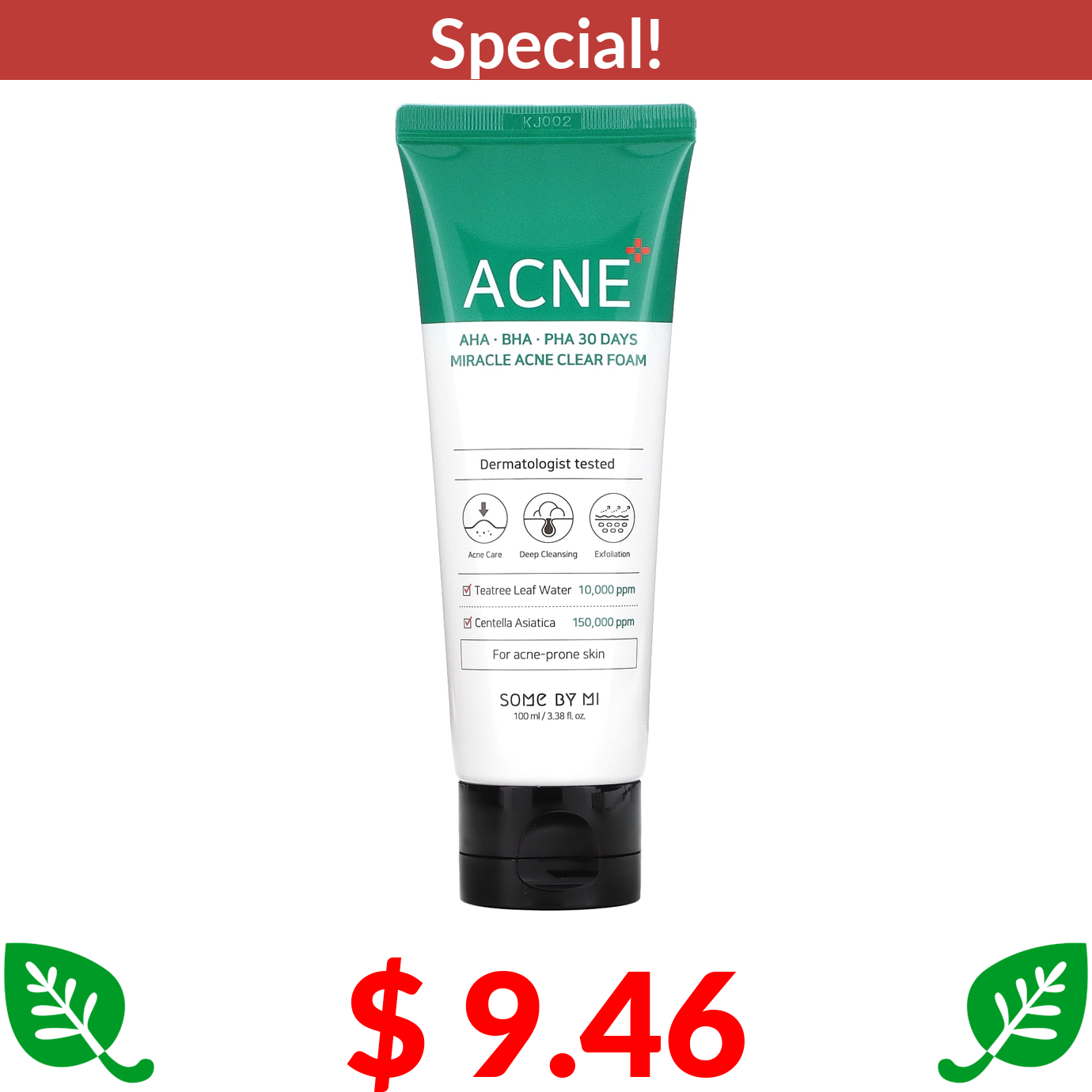 $ 9.46 SOME BY MI, AHA, BHA, PHA 30 Days Miracle Acne Clear Foam, 3.38 fl oz (100 ml)