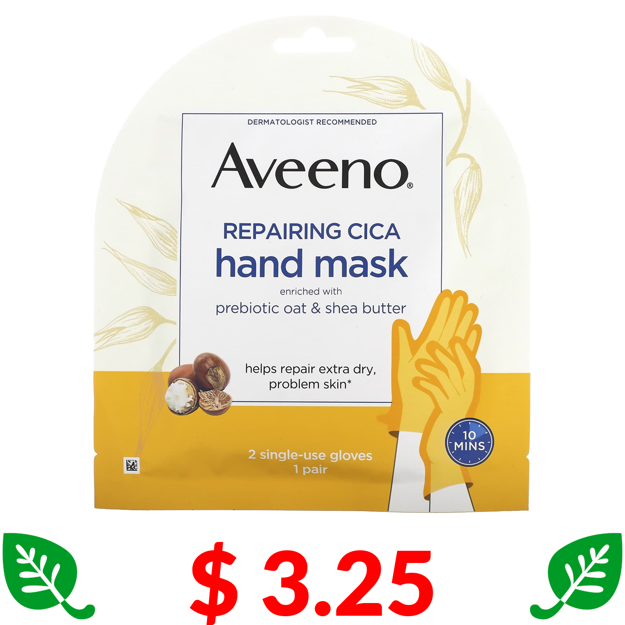 $ 3.25 Aveeno, Repairing Cica Hand Mask, 2 Single-Use Gloves