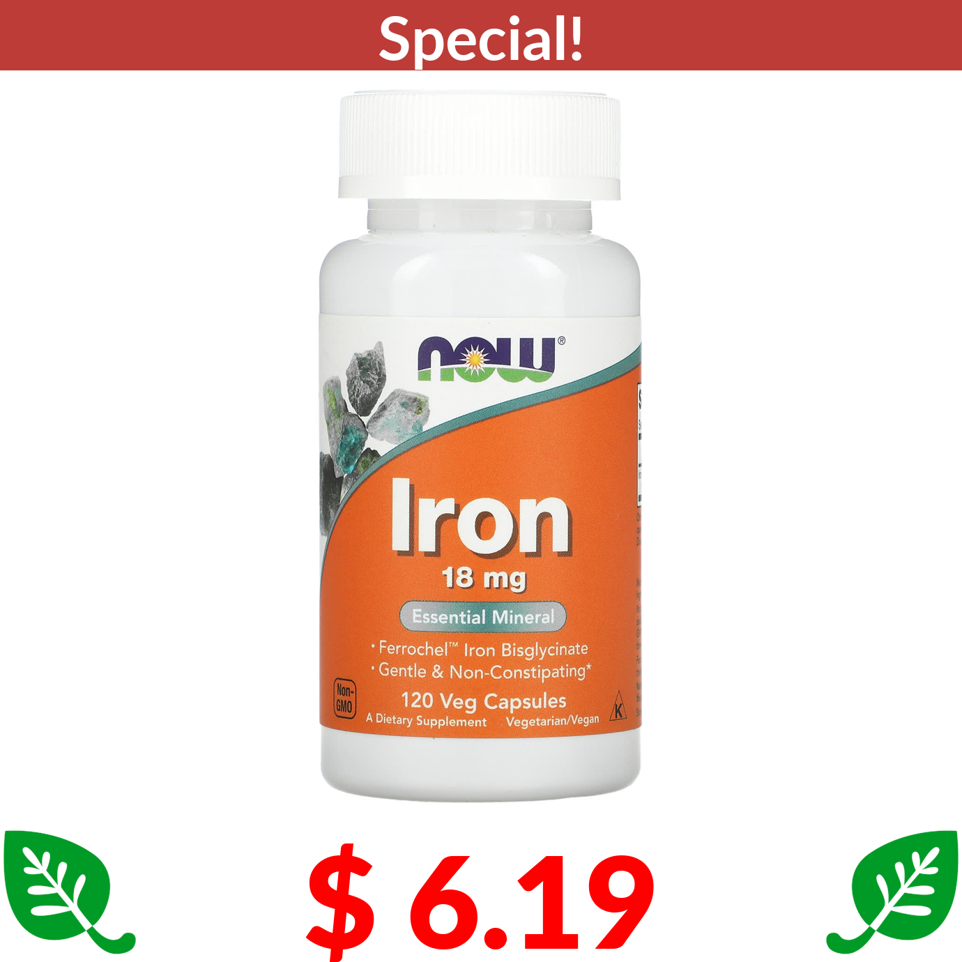 $ 6.19 NOW Foods, Iron, 18 mg, 120 Veg Capsules