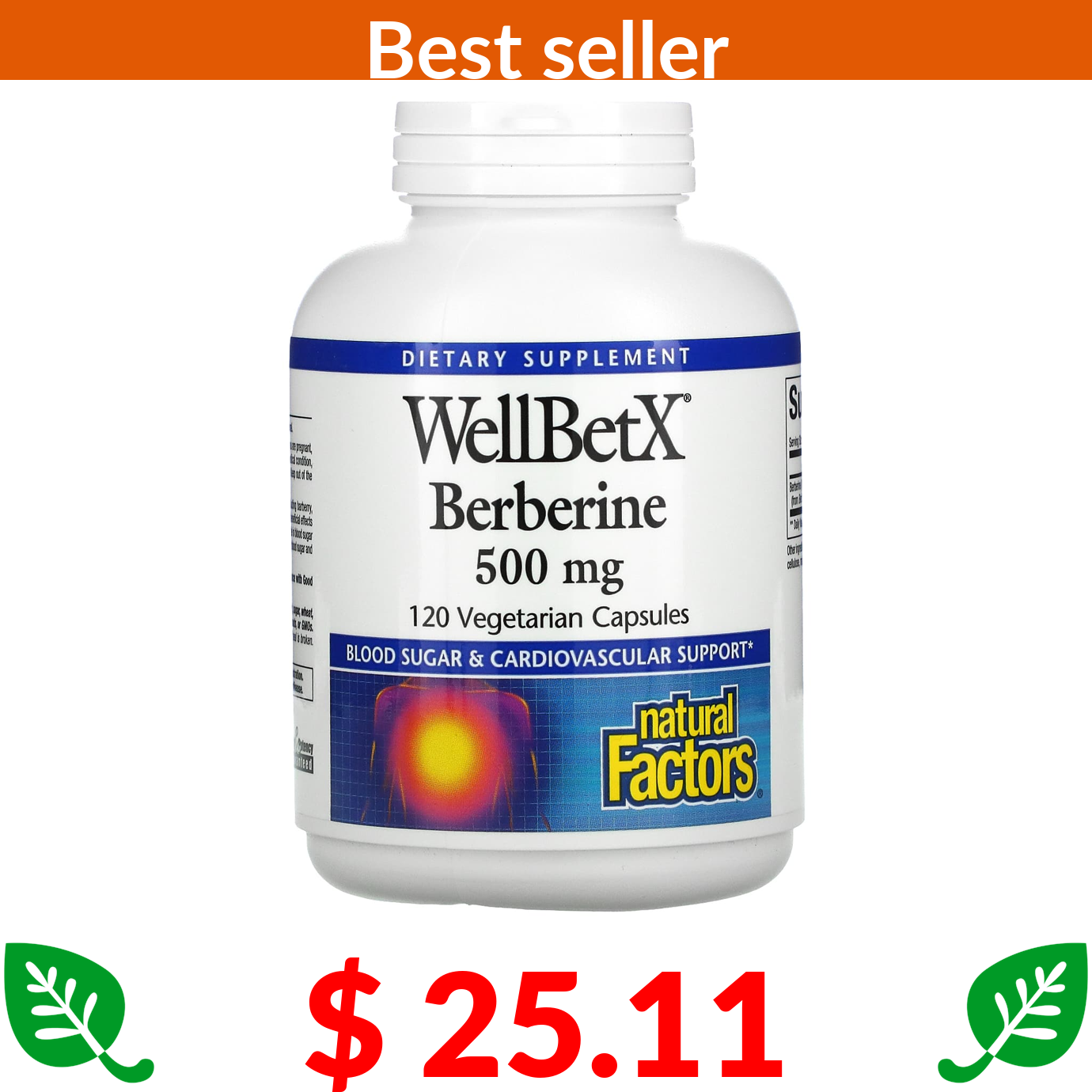 $ 25.11 Natural Factors, WellBetX, Berberine, 500 mg, 120 Vegetarian Capsules