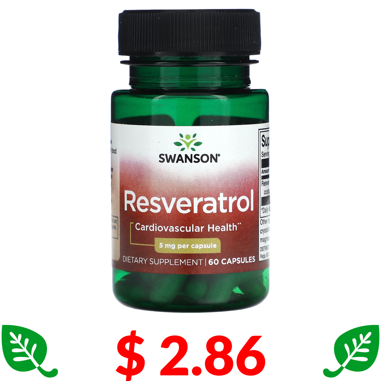 $ 2.86 Swanson, Resveratrol, 5 mg , 60 Capsules