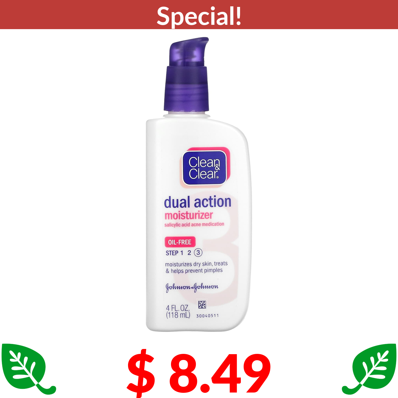 $ 8.49 Clean & Clear, Dual Action Moisturizer, Salicylic Acid Acne Medication, 4 fl oz (118 ml)