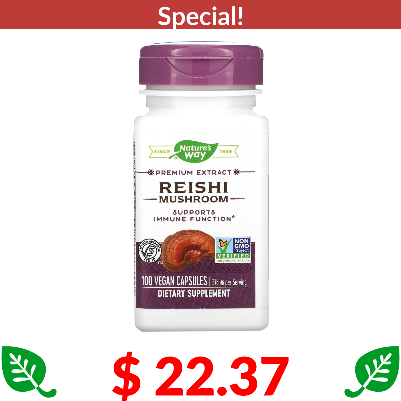 $ 22.37 Nature's Way, Reishi Mushroom, 188 mg, 100 Vegan Capsules