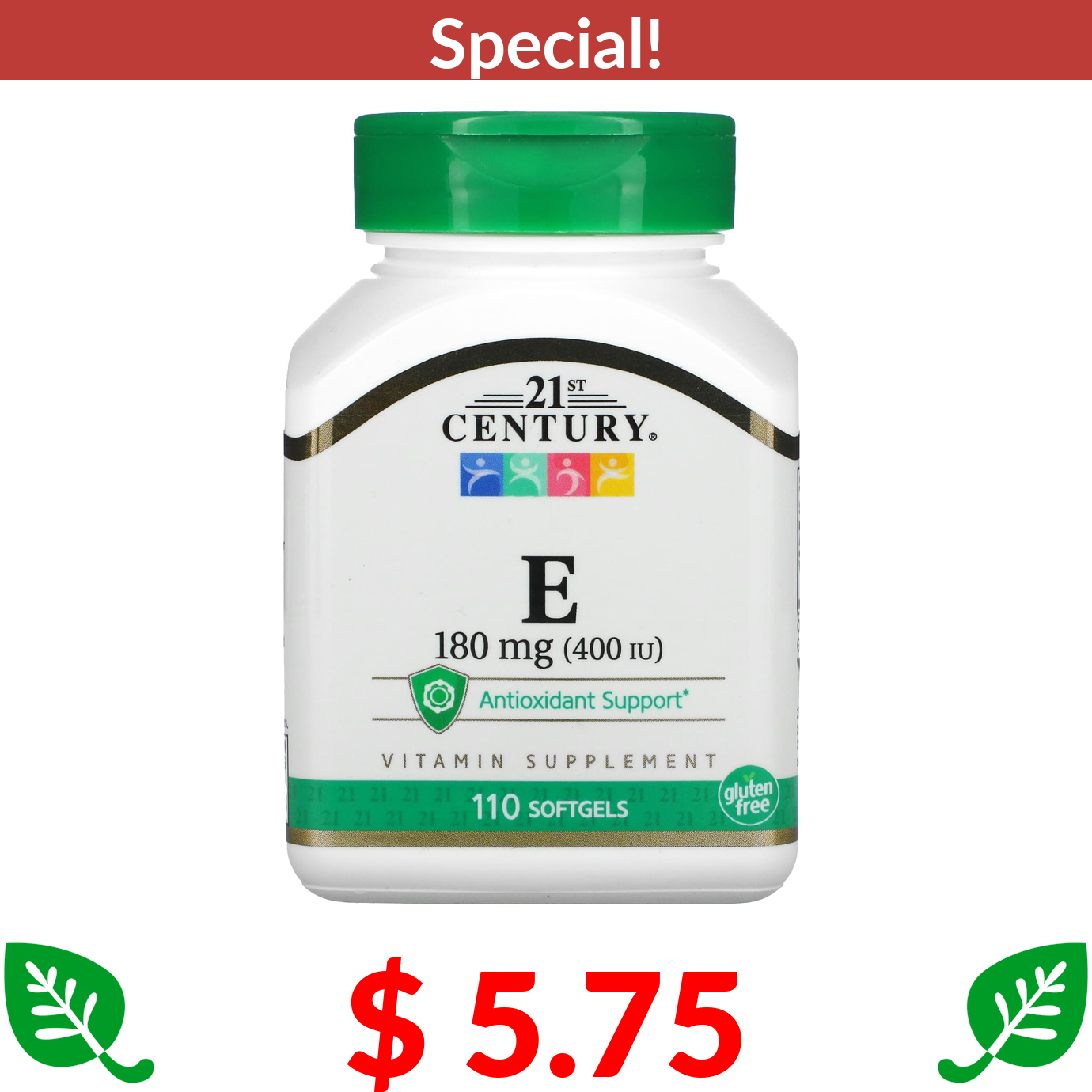 $ 5.75 21st Century, Vitamin E, 180 mg (400 IU), 110 Softgels