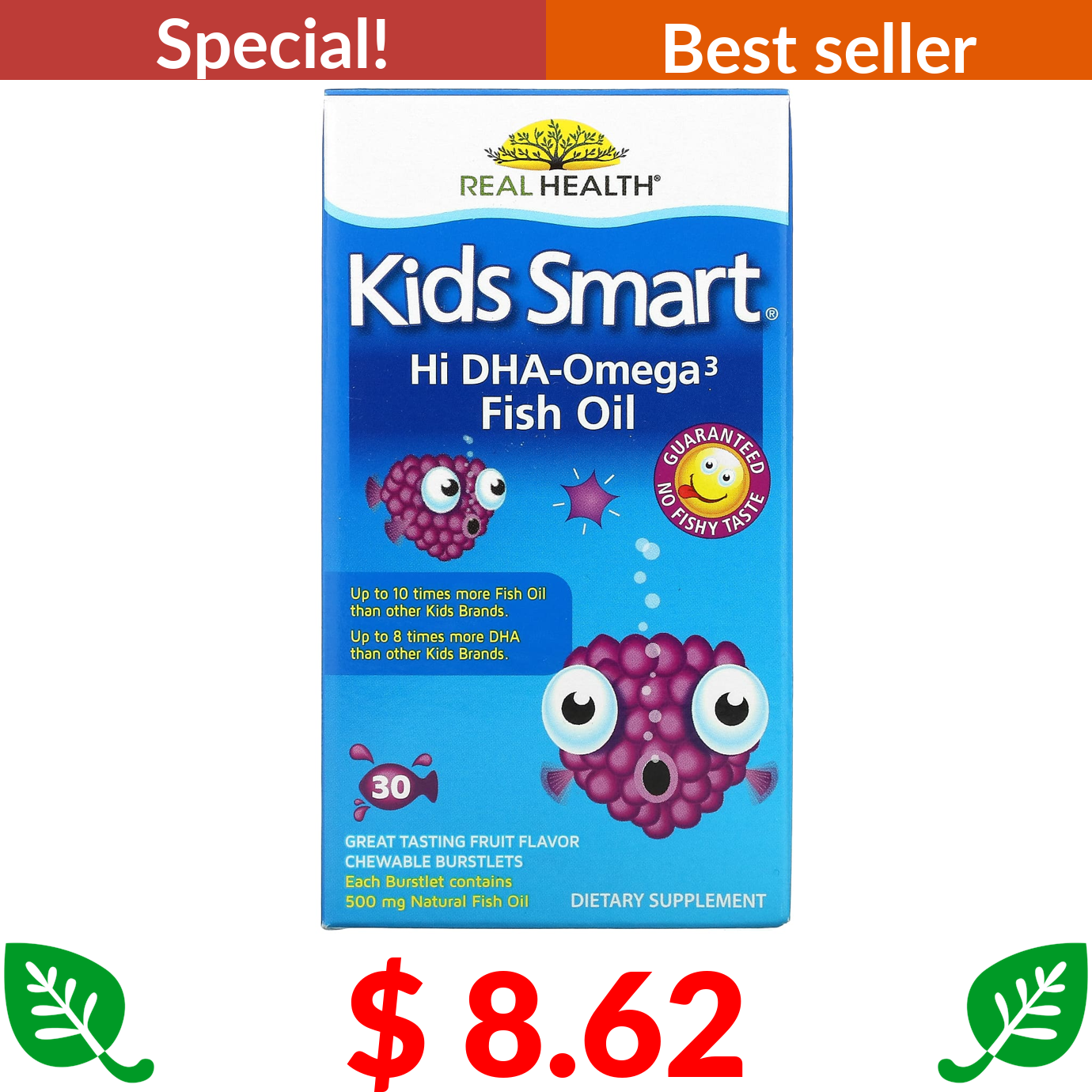 $ 11.38 NaturesPlus, Animal Parade, Kids Immune Booster, Tropical Berry, 90 Animal-Shaped Tablets
