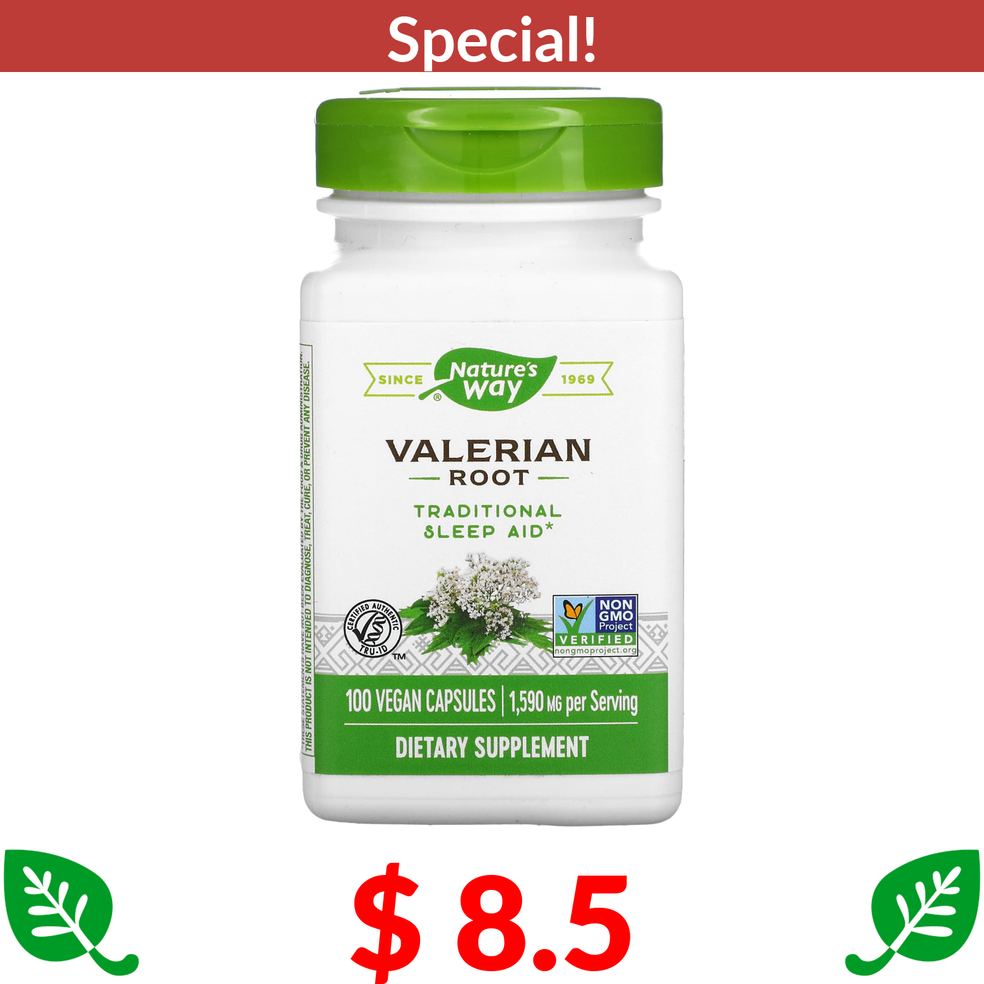 $ 8.5 Nature's Way, Valerian Root, 1,590 mg, 100 Vegan Capsules