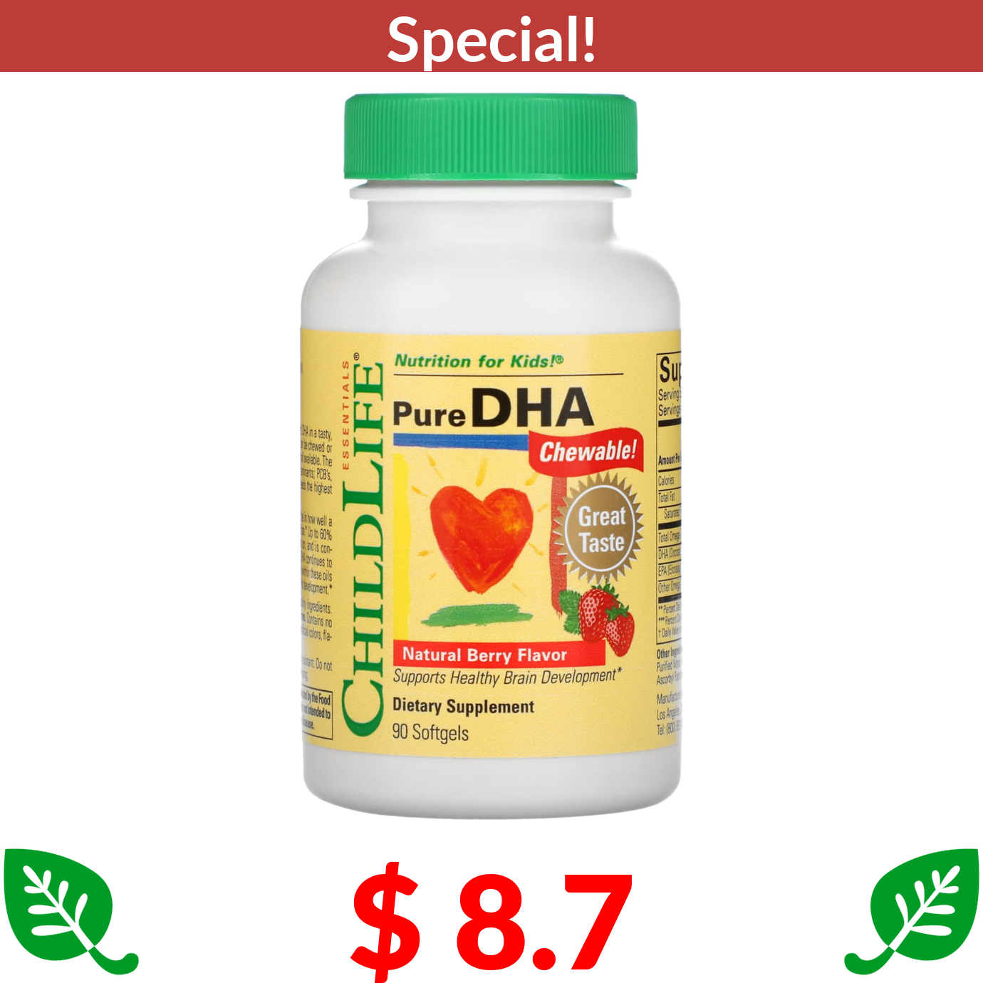 $ 8.7 ChildLife Essentials, Pure DHA, Natural Berry, 90 Softgels