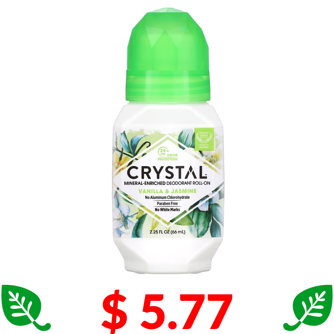 $ 5.77 Crystal, Mineral-Enriched Deodorant Roll-On, Vanilla & Jasmine, 2.25 fl oz (66 ml)