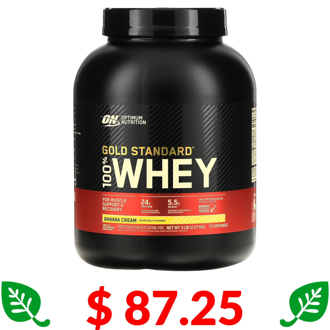 $ 87.25 Optimum Nutrition, Gold Standard 100% Whey, Banana Cream, 5 lb (2.27 kg)
