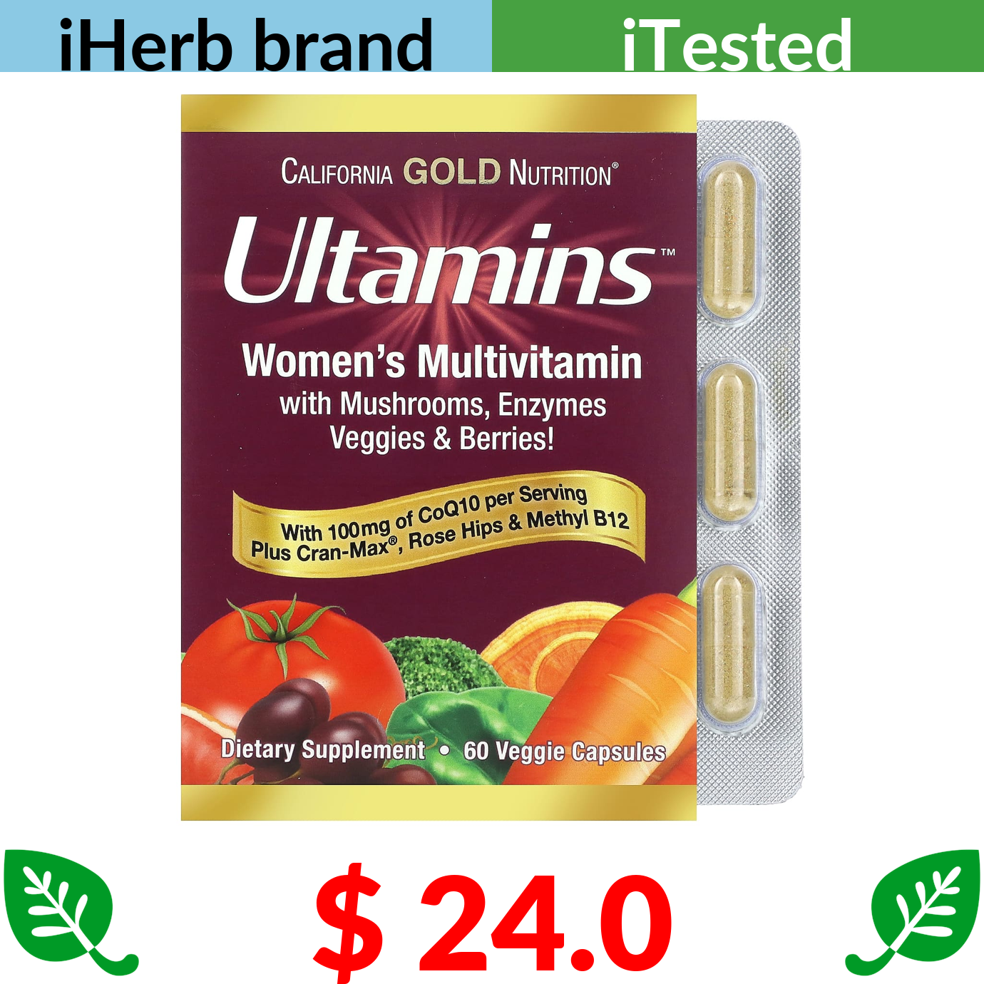 $ 2.95 California Gold Nutrition, Gold C, USP Grade Vitamin C, 1,000 mg, 60 Veggie Capsules