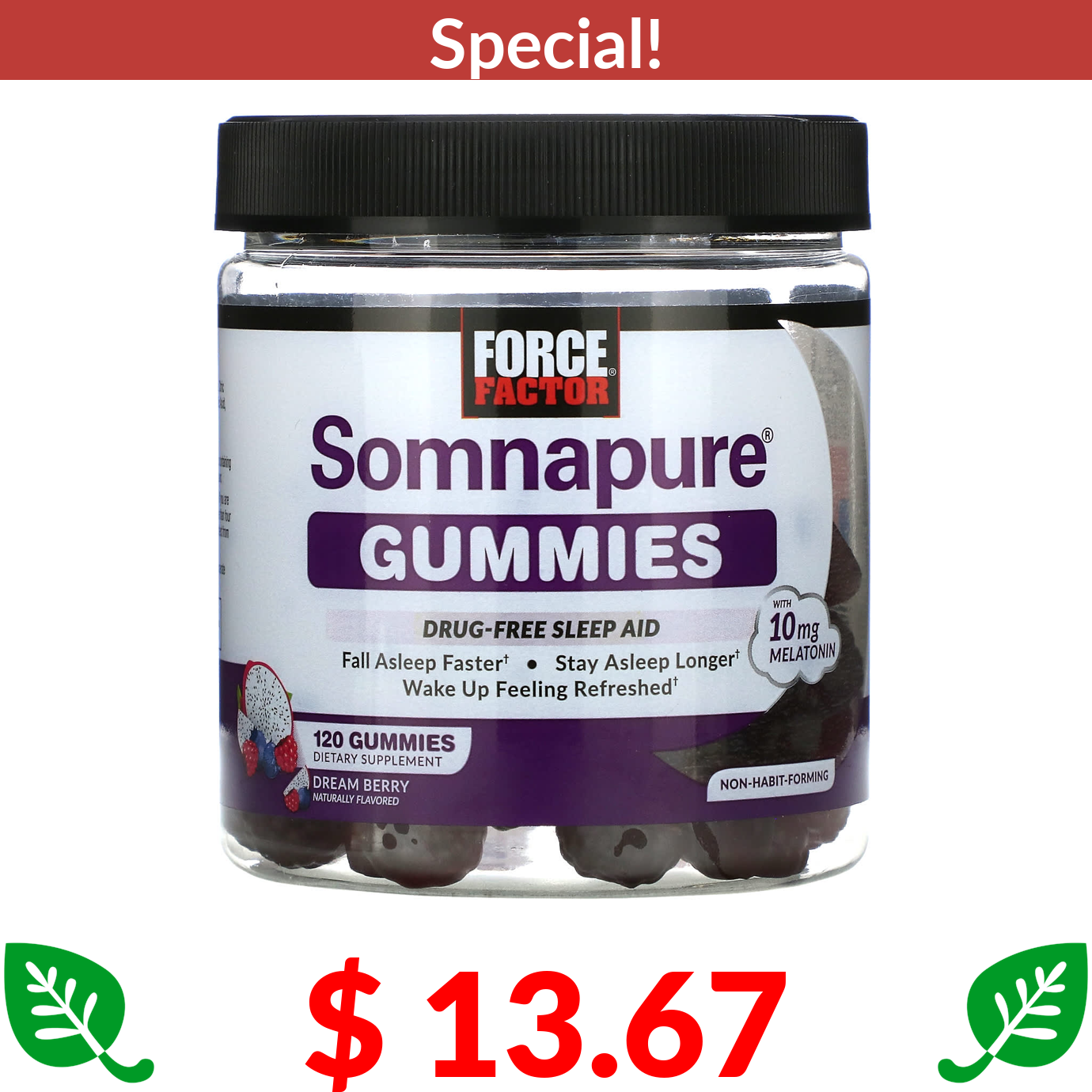 $ 13.67 Force Factor, Somnapure Gummies, Melatonin, Dream Berry, 5 mg, 120 Gummies