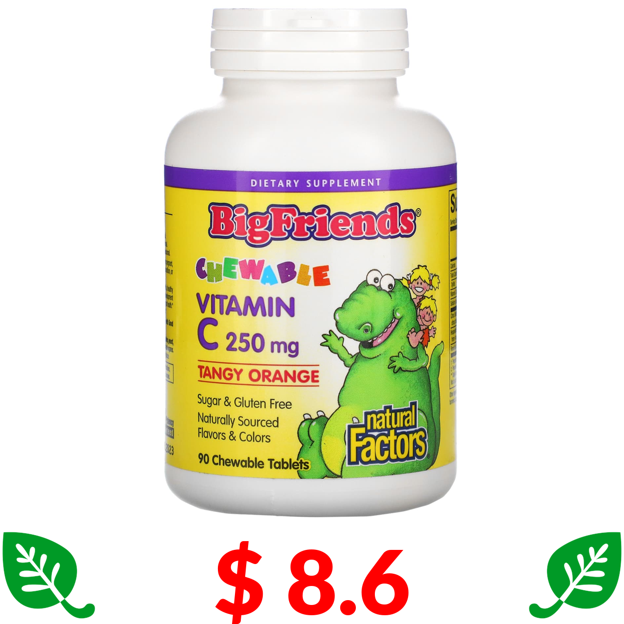 $ 8.6 Natural Factors, Big Friends, Chewable Vitamin C, Tangy Orange, 250 mg, 90 Chewable Tablets