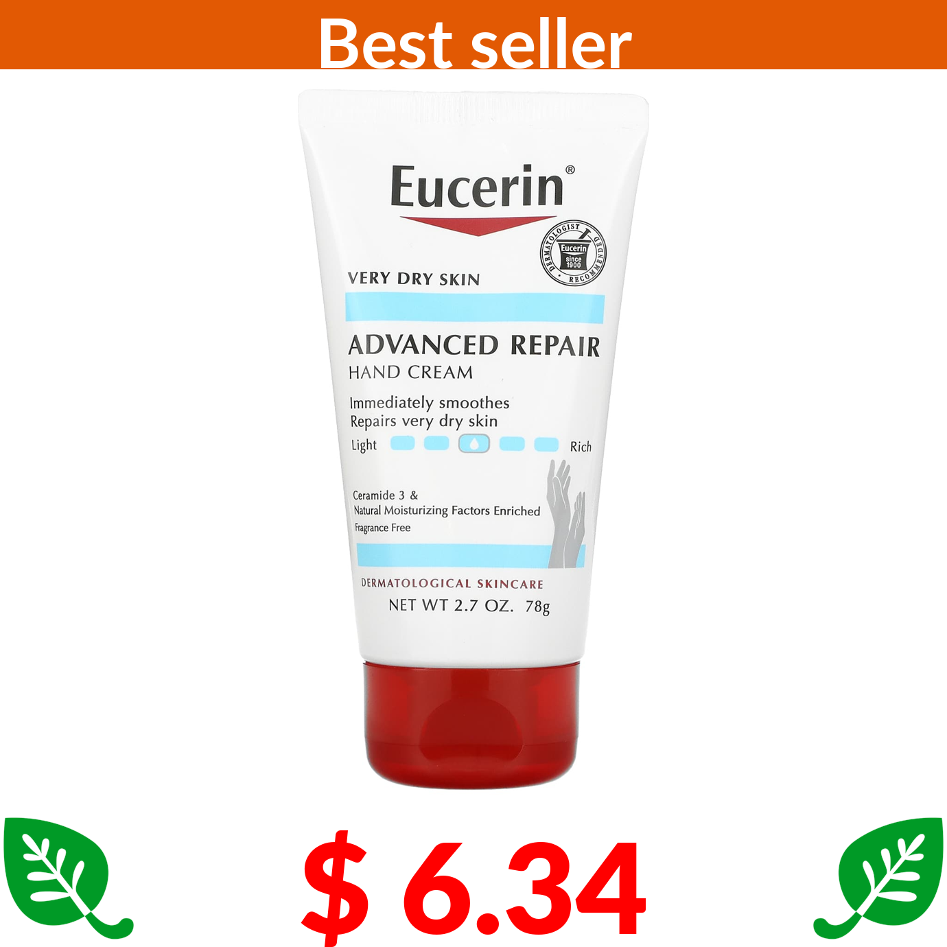 $ 6.34 Eucerin, Advanced Repair Hand Creme, Fragrance Free, 2.7 oz (78 g)
