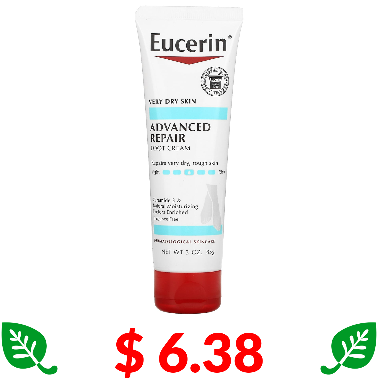 $ 6.38 Eucerin, Advanced Repair Foot Creme, Fragrance Free, 3 oz (85 g)