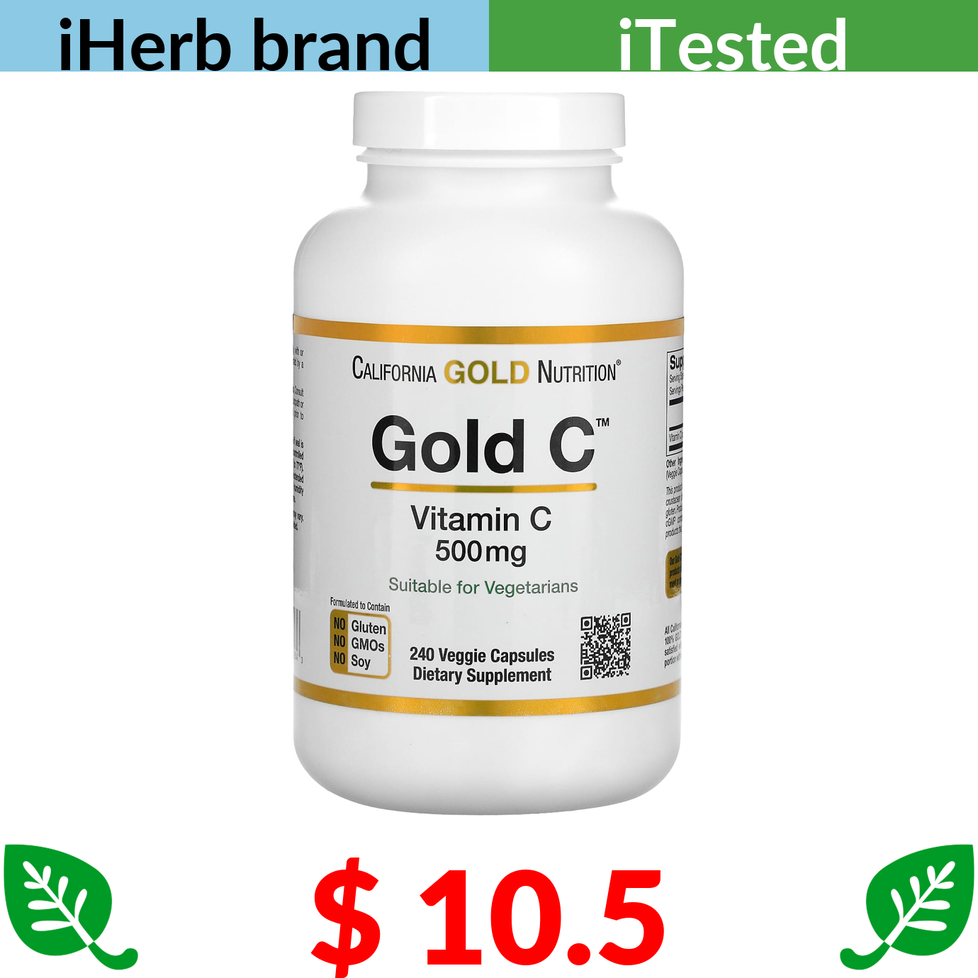 $ 10.5 California Gold Nutrition, Gold C, USP Grade Vitamin C, 500 mg, 240 Veggie Capsules