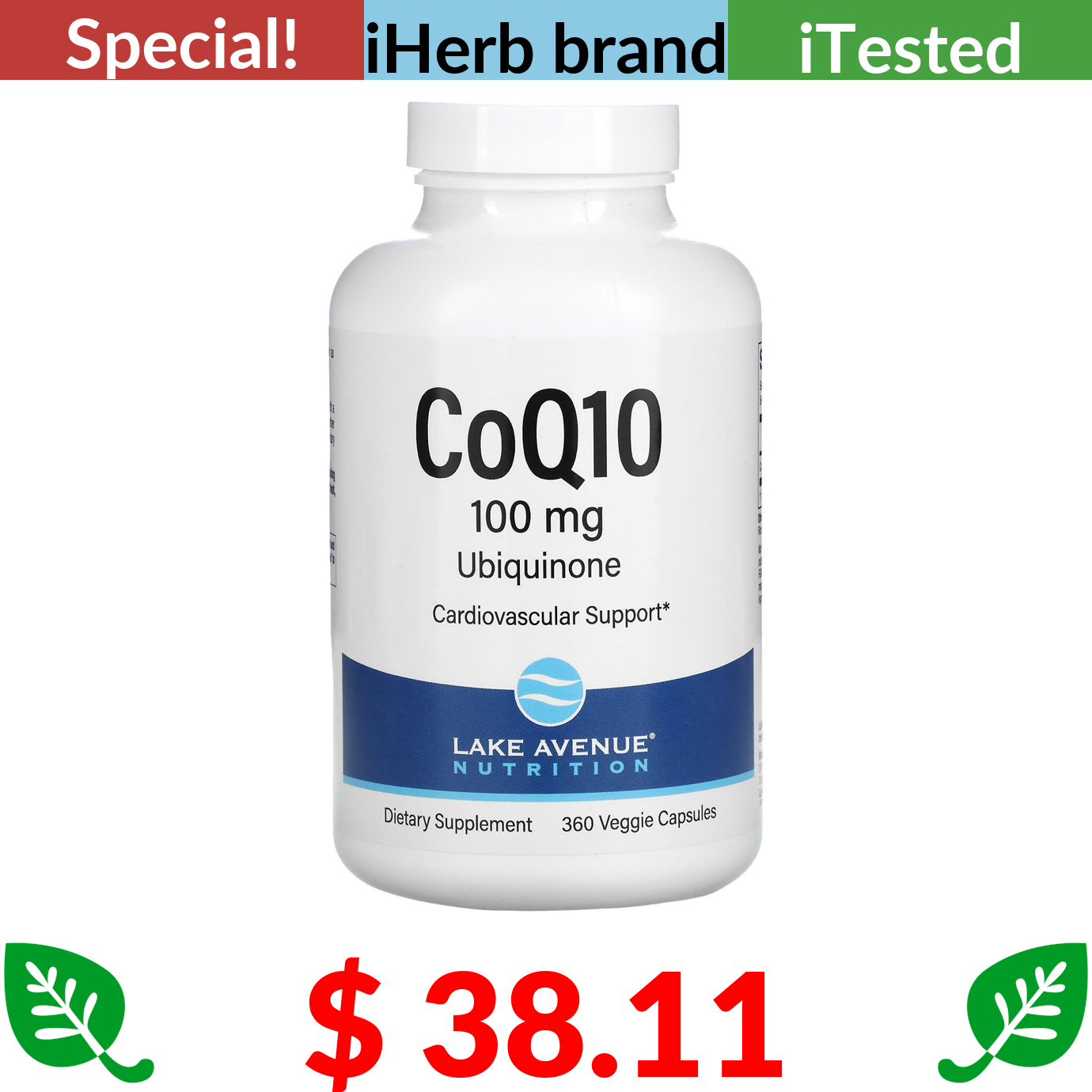 $ 38.11 Lake Avenue Nutrition, CoQ10, USP Grade Ubiquinone, 100 mg, 360 Veggie Capsules