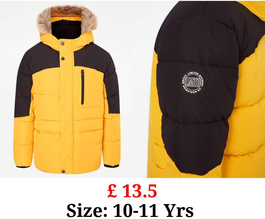 £ 13.5 Yellow Faux Fur Trim Padded Coat