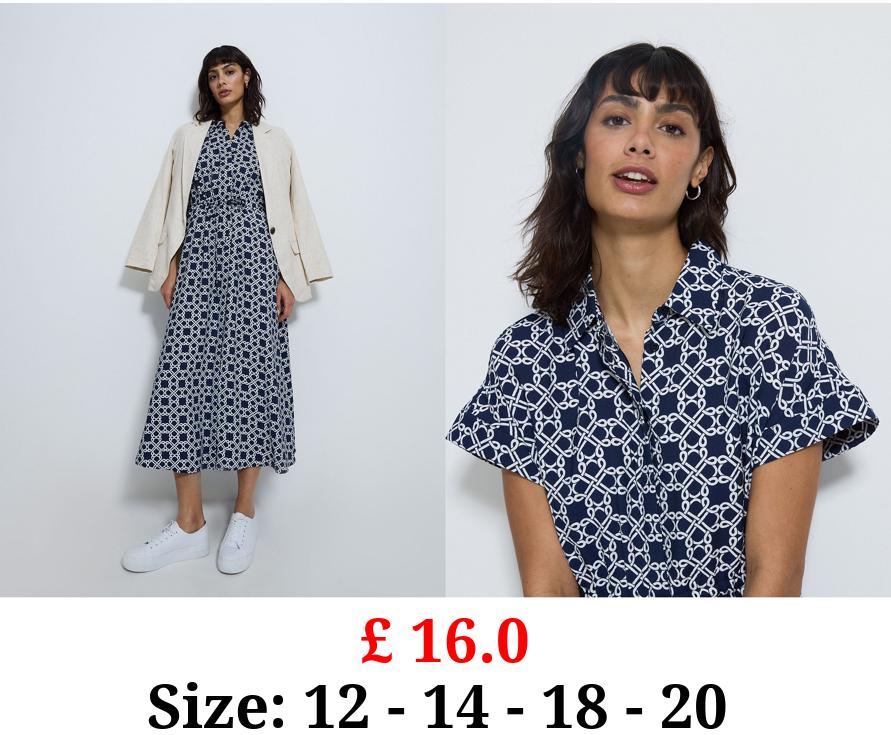 £ 16.0 Navy Chain Print Collared Midi Dress