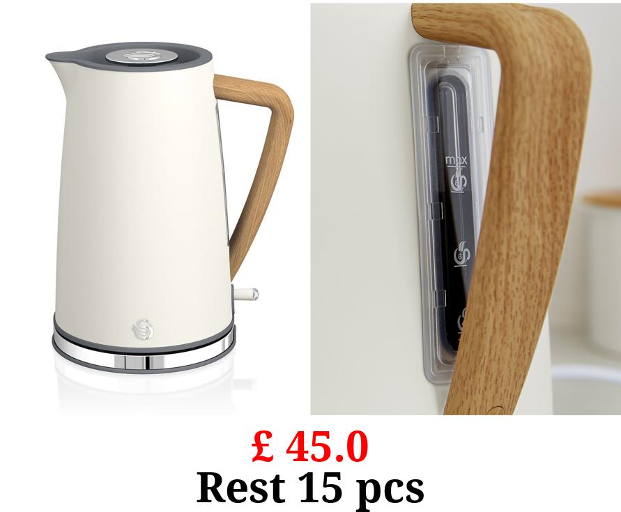 £ 24.0 Cream And Wood Textured Scandi Fast Boil Kettle 1.7L