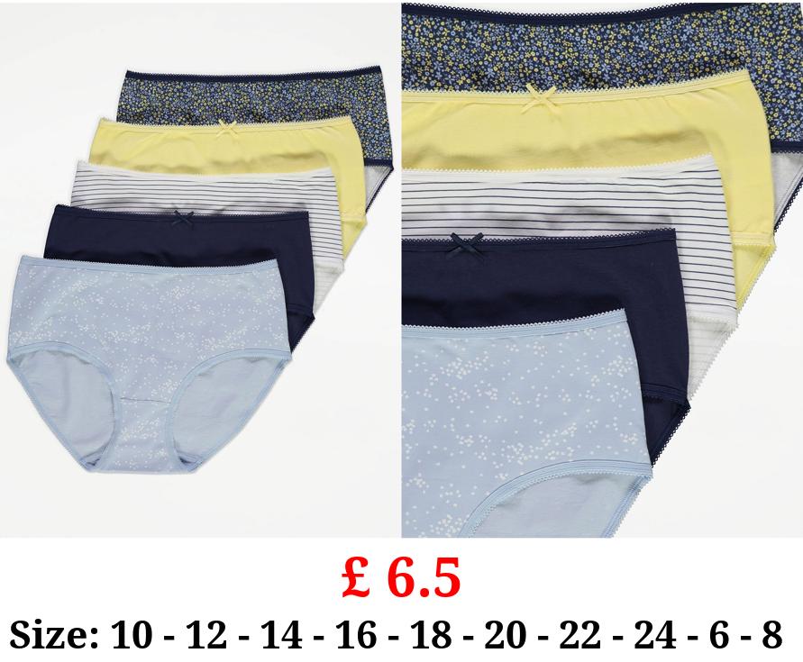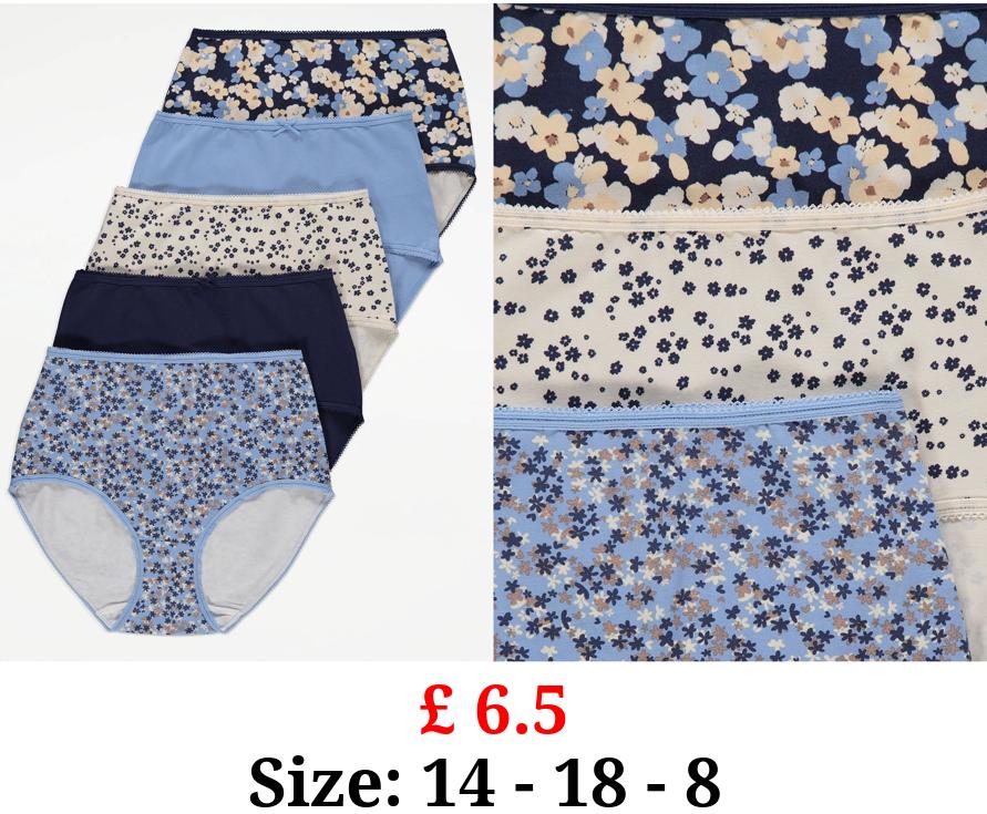 £ 6.5 Blue Floral High Waist Full Briefs 5 Pack