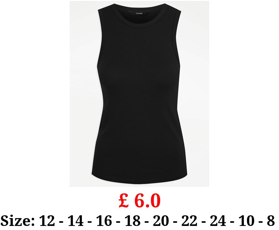 £ 6.0 Black High Neck Ribbed Vest