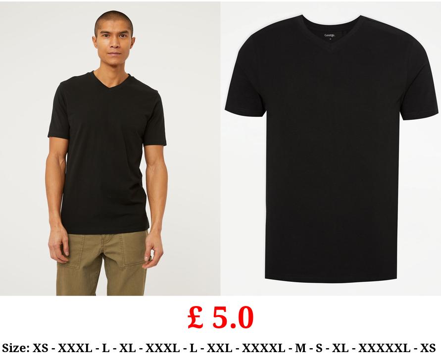 £ 5.0 Black Plain V-Neck T-Shirt