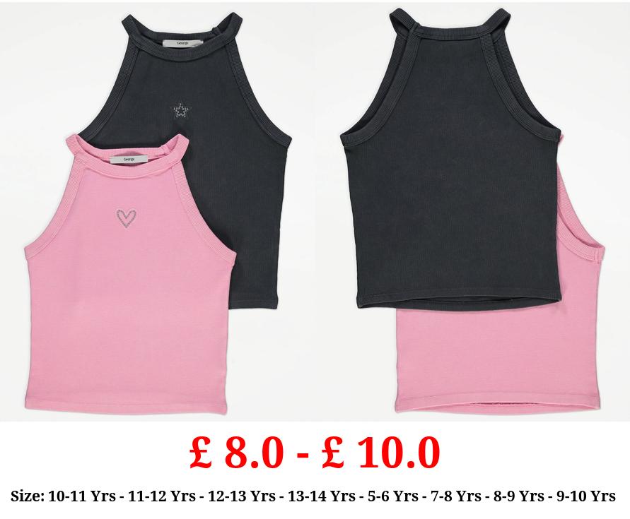 £ 8.0 - £ 10.0 Washed Ribbed Heart Halter Neck Vest Tops 2 Pack