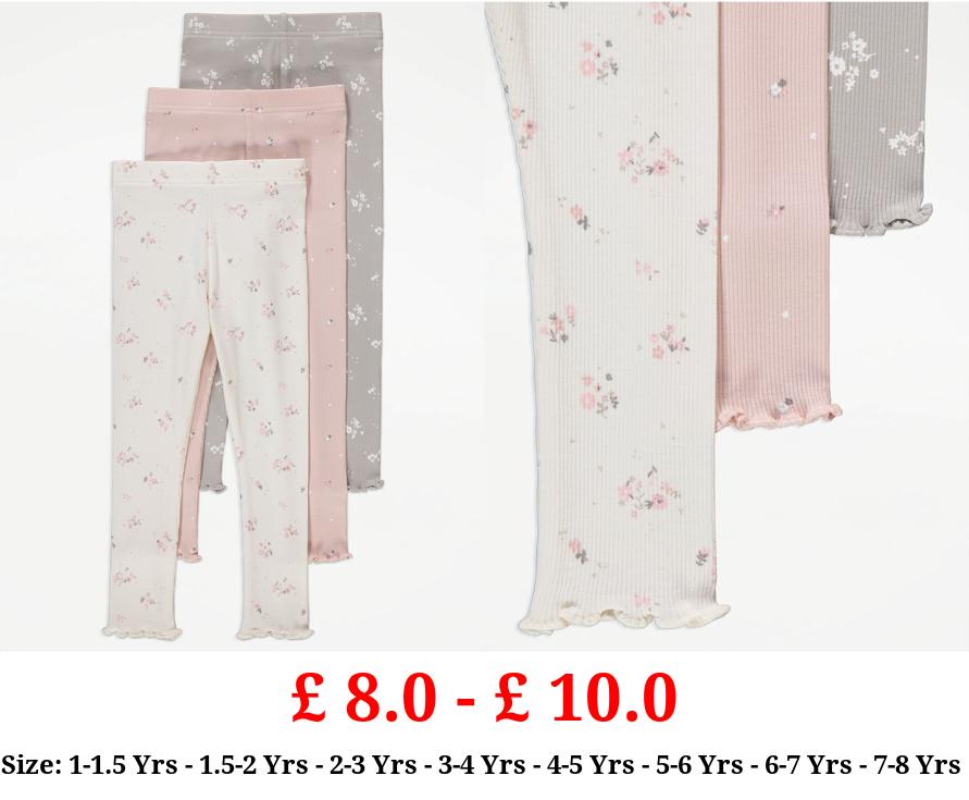 £ 8.0 - £ 10.0 Neutral Floral Ribbed Lettuce Edge Leggings 3 Pack