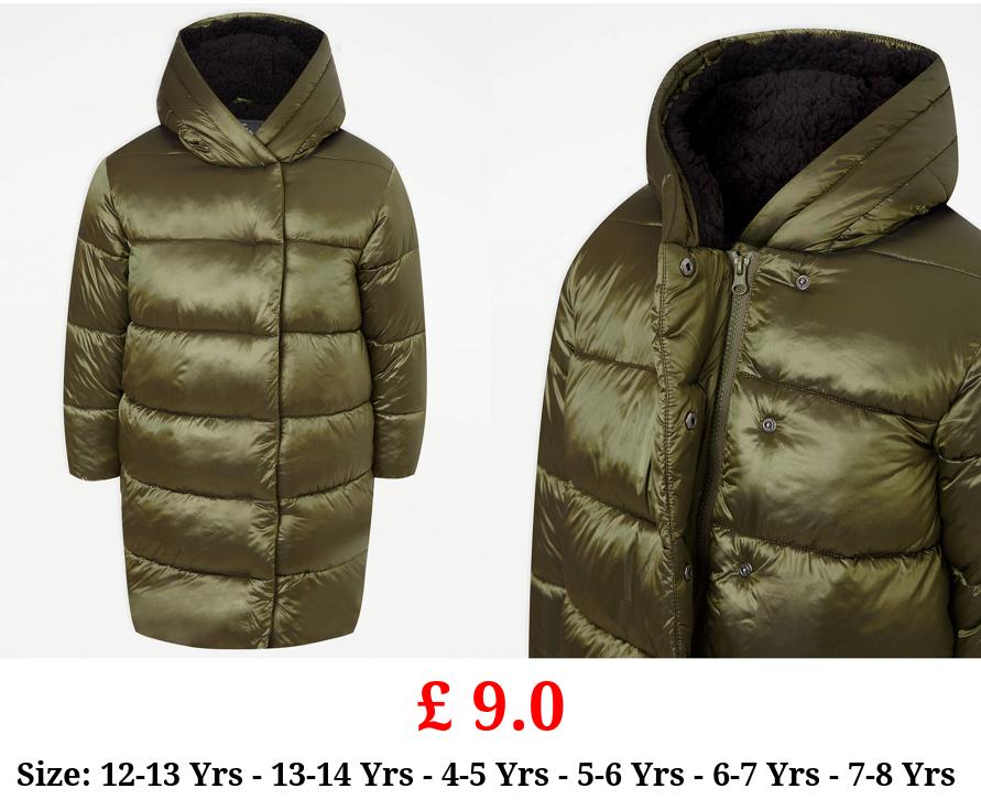 £ 9.0 Green Shiny Longline Padded Coat