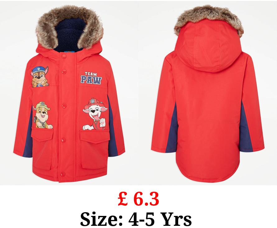 £ 6.3 PAW Patrol Red Faux Fur Trim Parka Coat