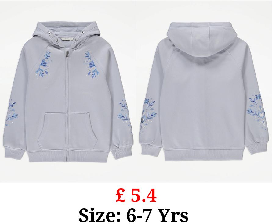 £ 5.4 Light Blue Floral Embroidered Zip Through Hoodie