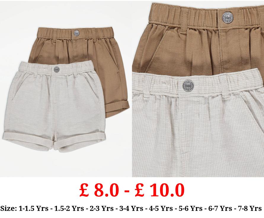 £ 8.0 - £ 10.0 Tan Linen Blend Shorts 2 Pack