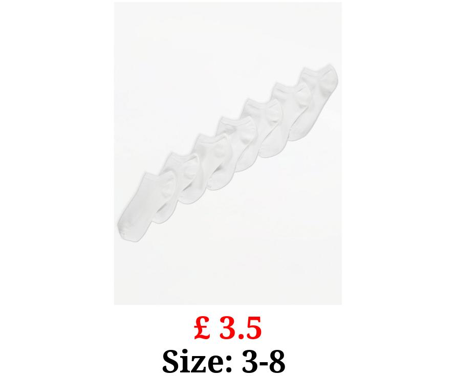 £ 3.5 White Cotton Rich Trainer Liner Socks 7 Pack
