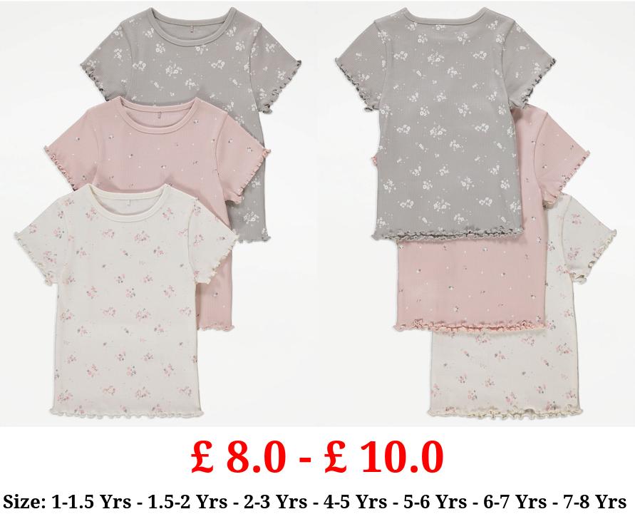 £ 8.0 - £ 10.0 Neutral Floral Ribbed Lettuce Edge T-Shirts 3 Pack